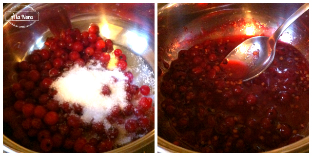 A ribizlit összefőzzük a cukorral, majd egy szűrőn átpasszírozzuk.